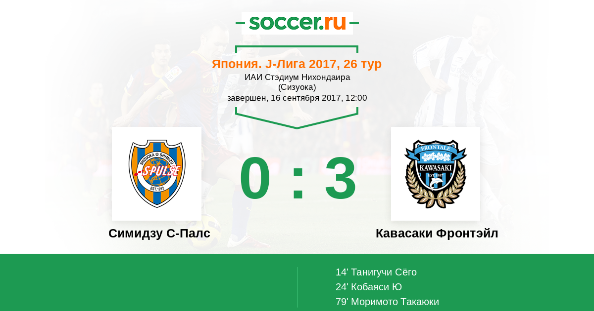 79' (0:3) Моримото Такаюки (9) (Танигучи Сёго (5))