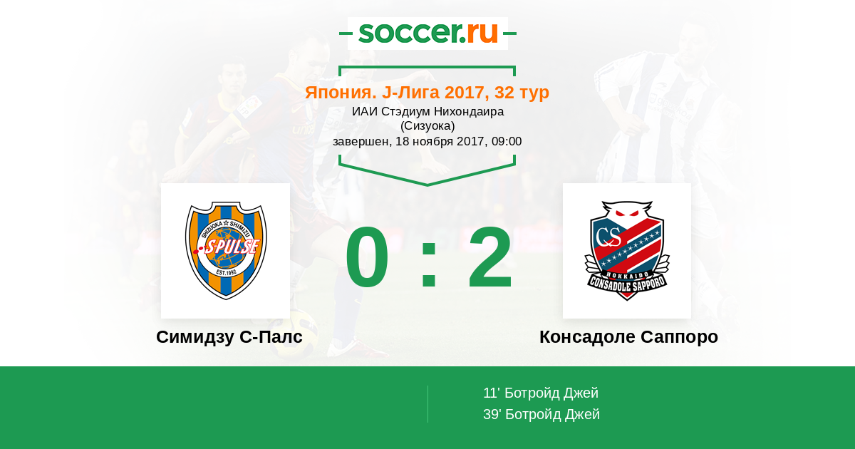 39' (0:2) Ботройд Джей (48) (Фукумори Акито (24))