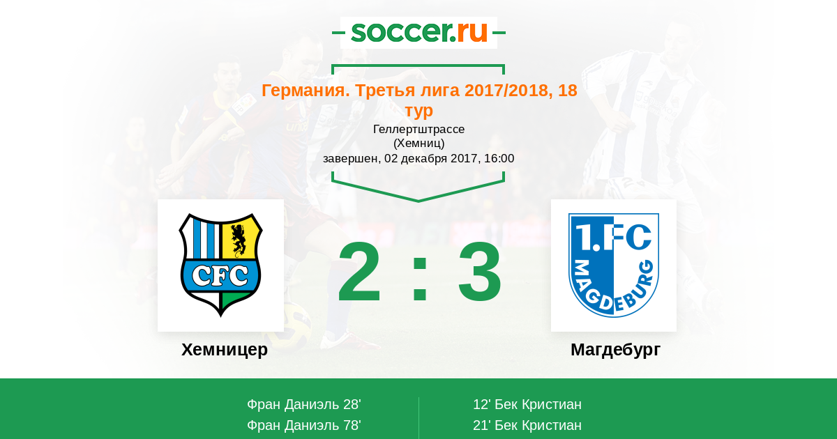 78' (2:3) Фран Даниэль (11) (Ханш Флориан (24))