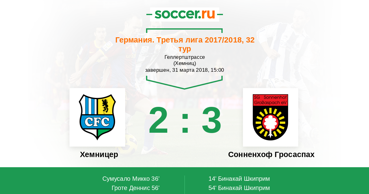 54' (1:2) Бинакай Шкиприм (7) (Реттгер Тимо (18))