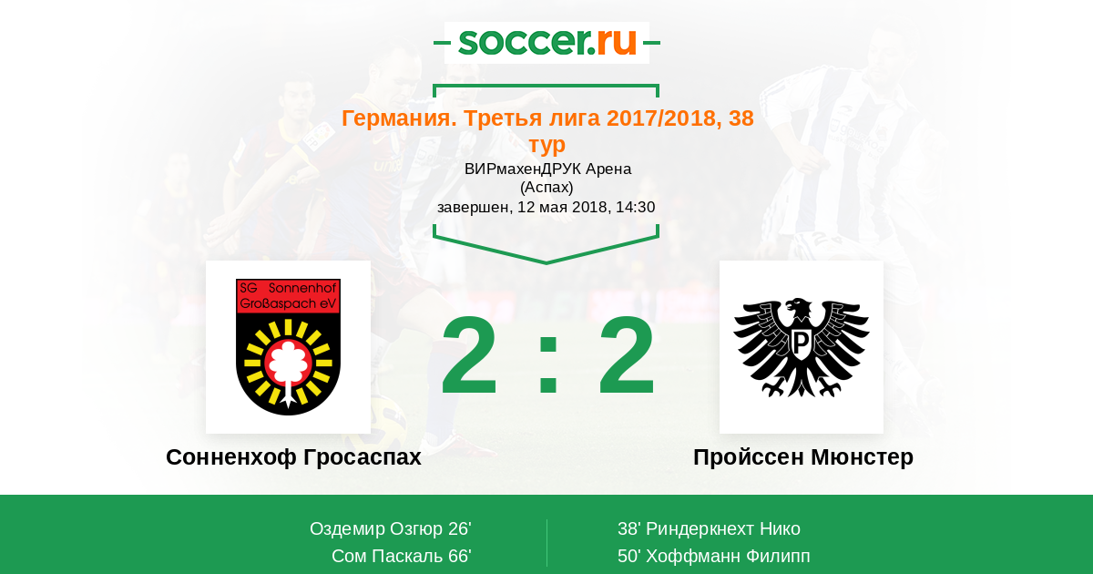 38' (1:1) Риндеркнехт Нико (17) (Мениг Фабиан (5))