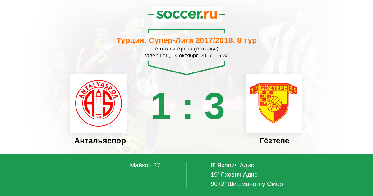 27' (1:2) Майкон (11) (Это'О Самуэль (9))