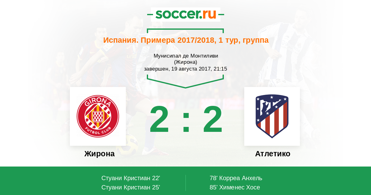 Как я и предпологал что жирона даст бой,плюс я не сомневался в том что атлетико недооценит никому неизвестную команду... Незнаю может в итоге атлетико и скатает ничью в итоге,но по мне было бы справедливым если жирона в итоге выграет матч...