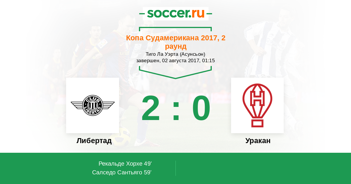 49' (1:0) Рекальде Хорхе (10) (Сантакрус Данило (8))