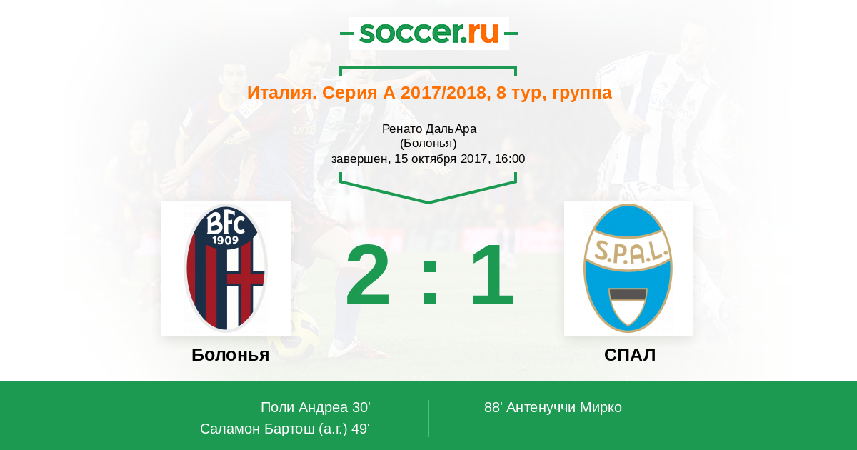 30' (1:0) Поли Андреа (16) (Паласио Родриго (24))