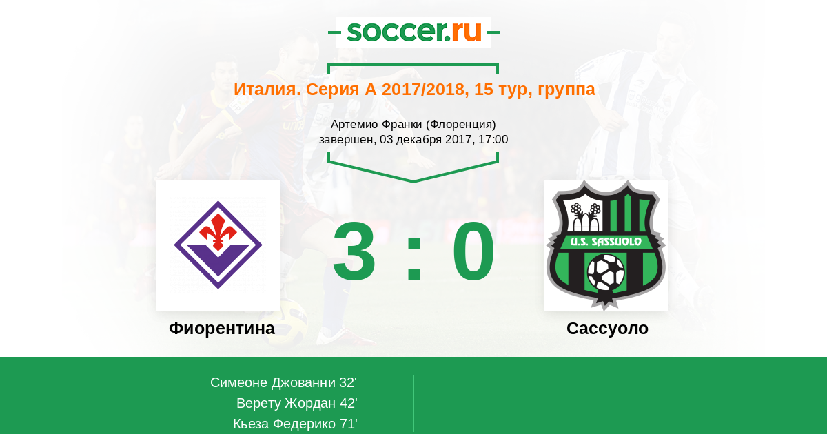 32' (1:0) Симеоне Джованни (9) (Лорини Венсан (2))