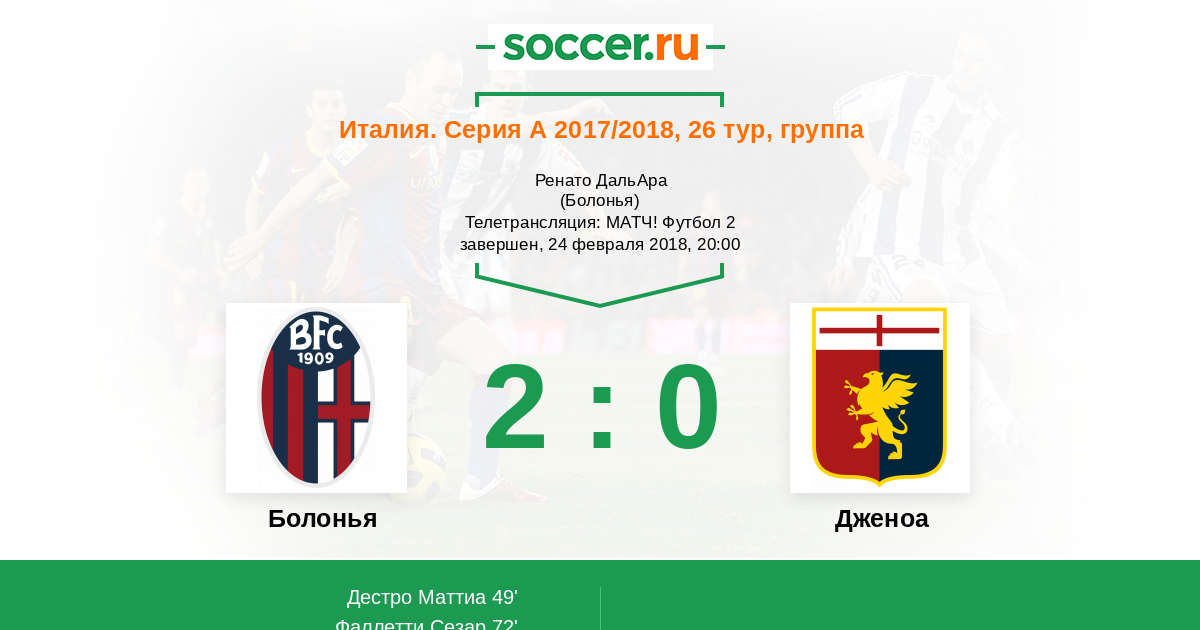 72' (2:0) Фаллетти Сезар (21) (Дестро Маттиа (10))