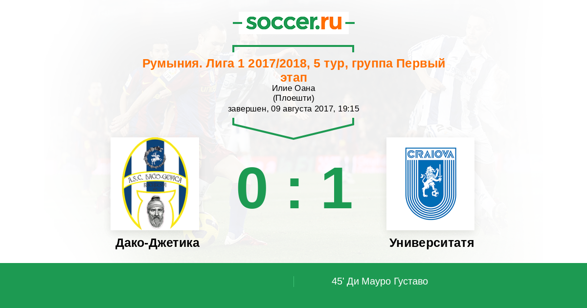 45' (0:1) Ди Мауро Густаво (7) (Роман Михай (70))