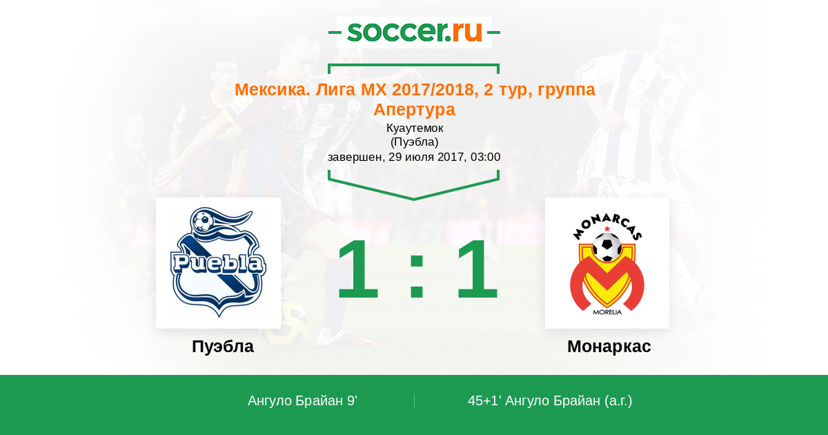 45+1' (1:1) Автогол Ангуло Брайан (2)
