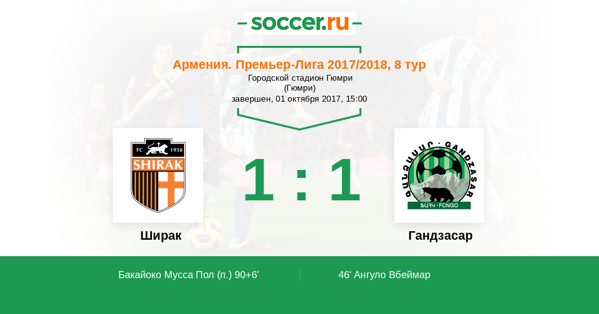 90+6' (1:1) Бакайоко Мусса Пол