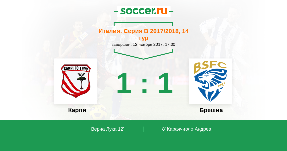 12' (1:1) Верна Лука (5) (Малкоре Джанкарло (9))