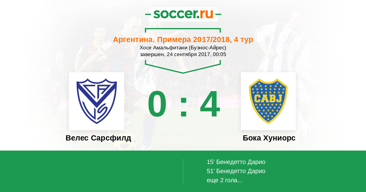 15' (0:1) Бенедетто Дарио (9) (Фабра Франк (18))