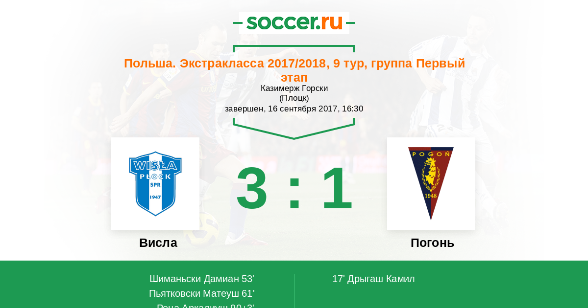 Гол90+3' (3:1) Реца Аркадиуш (9) (Стефанчик Цезарий (20))