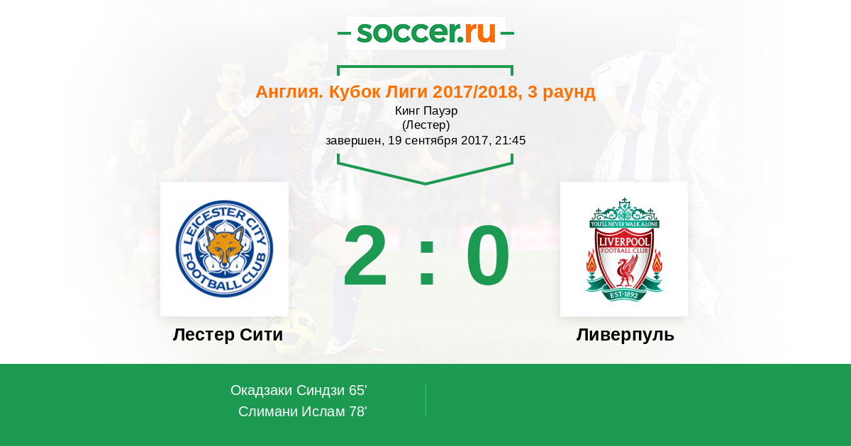 78' (2:0) Слимани Ислам (19) (Окадзаки Синдзи (20))