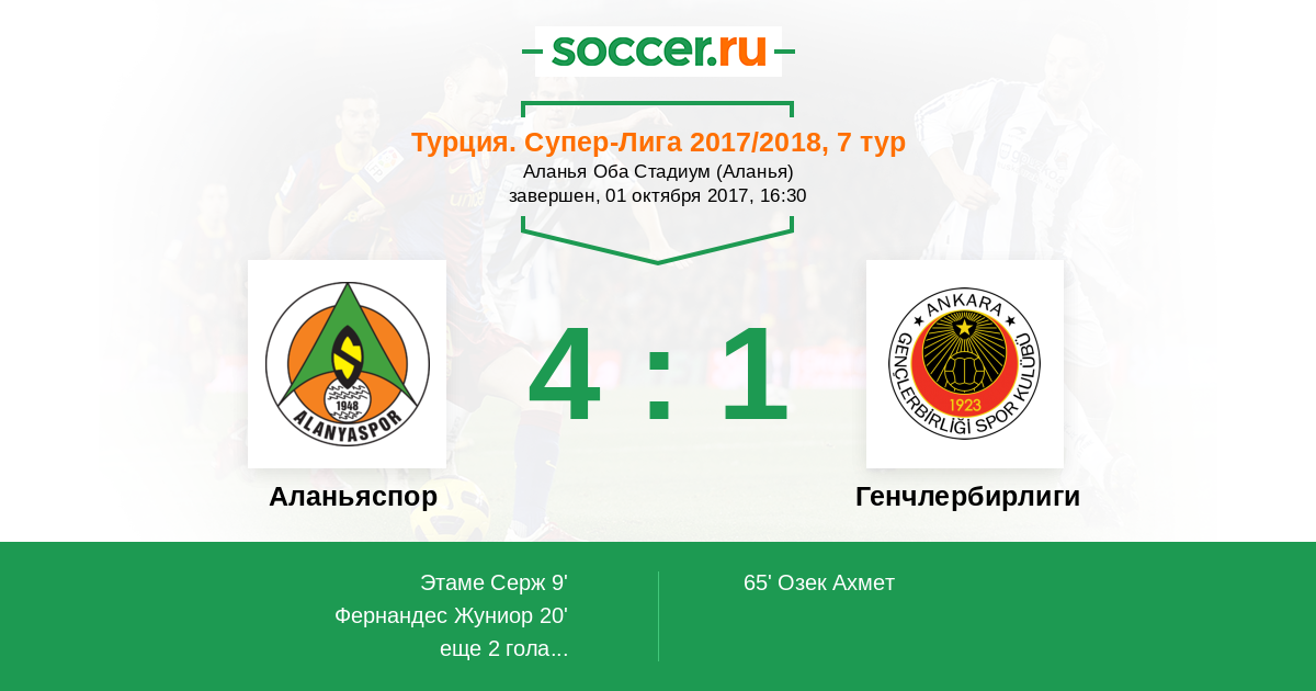 20' (2:0) Фернандес Жуниор (78) (Акбаба Эмре (10))