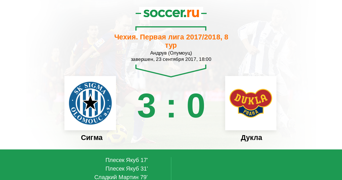 17' (1:0) Плесек Якуб (6)