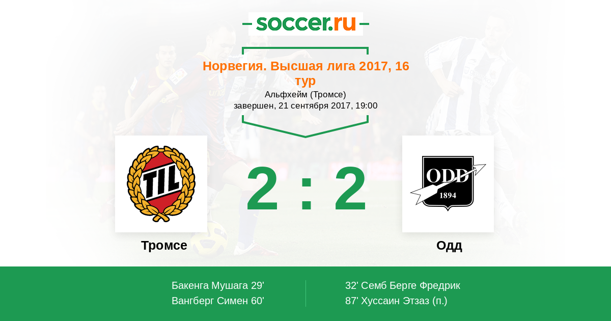 32' (1:1) Семб Берге Фредрик (16) (Берг Оливер (6))