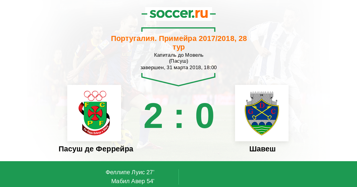 54' (2:0) Мабил Авер (27) (Коррейя Руй (3))