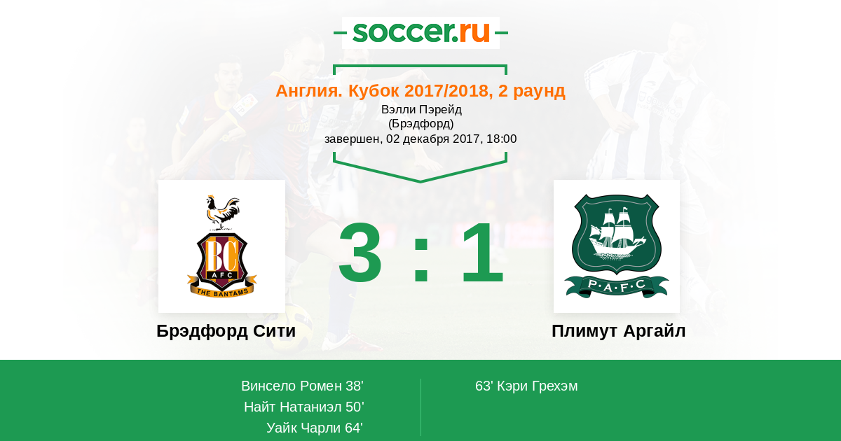 50' (2:0) Найт Натаниэл (22) (Винсело Ромен (6))