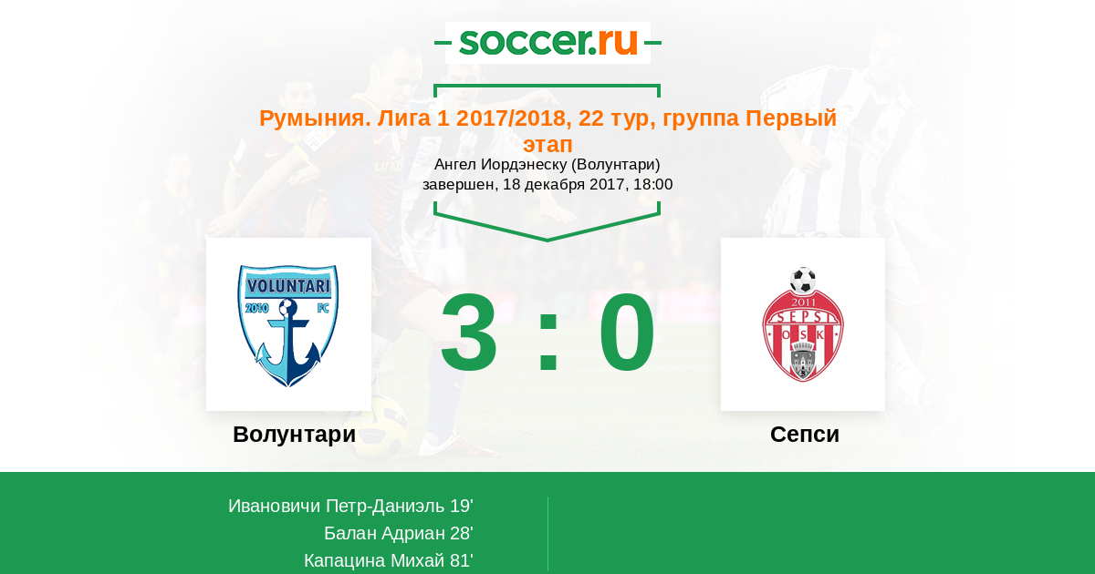 81' (3:0) Капацина Михай (11) (Балан Адриан (90))