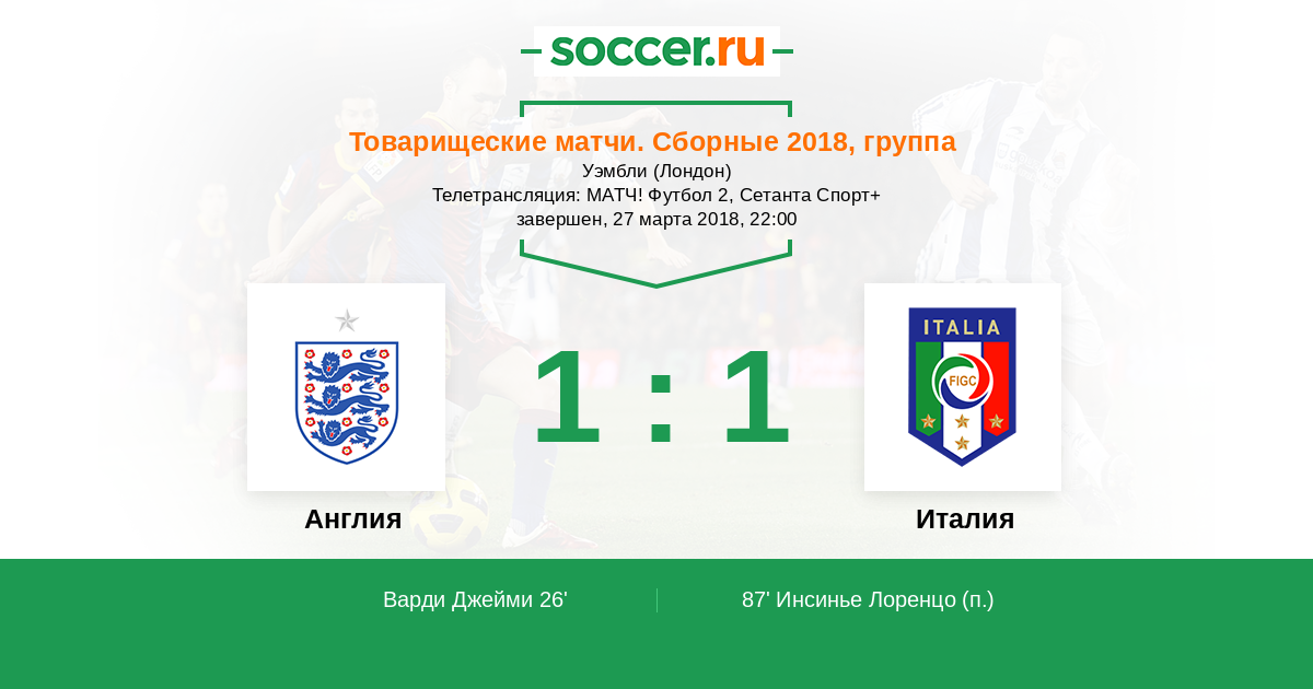 26' (1:0) Варди Джейми (9) (Лингард Джесси (11))