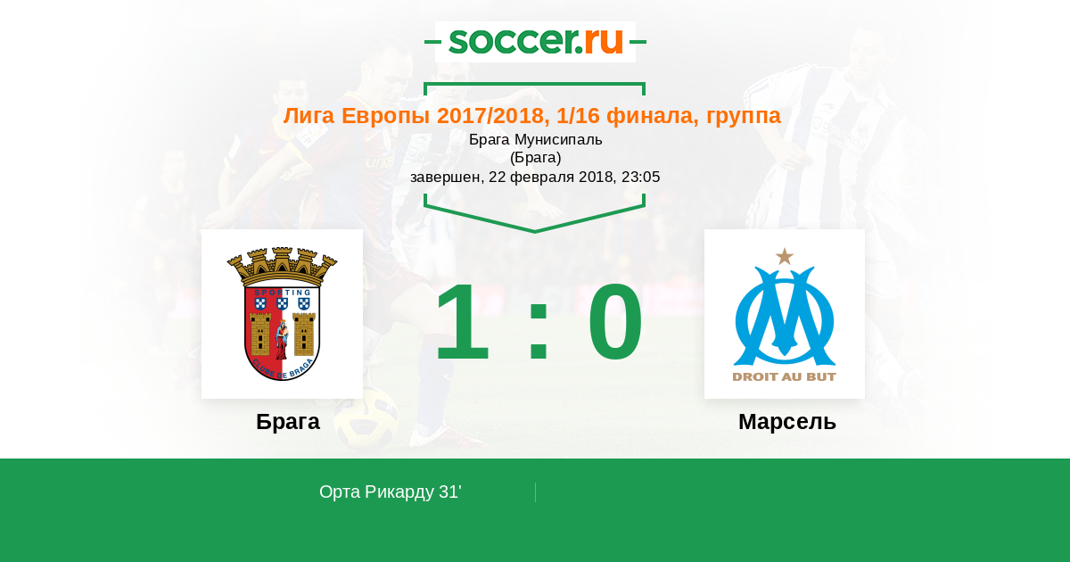 31' (1:0) Орта Рикарду (21) (Эдуарду Вилсон (7))