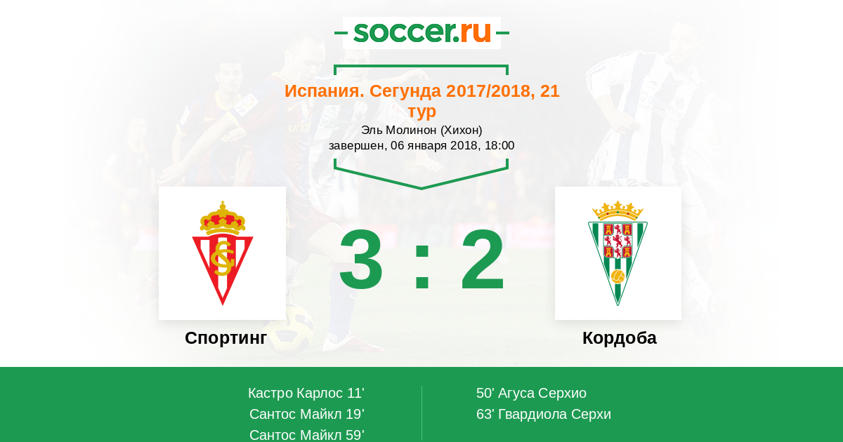 59' (3:1) Сантос Майкл (7) (Кармона Карлос (10))