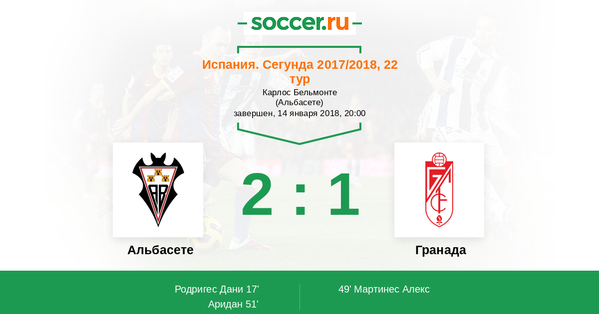 51' (2:1) Аридан (9) (Сусаэта Нестор (14))