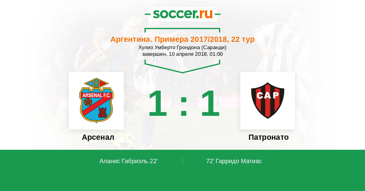 72' (1:1) Гарридо Матиас (10)