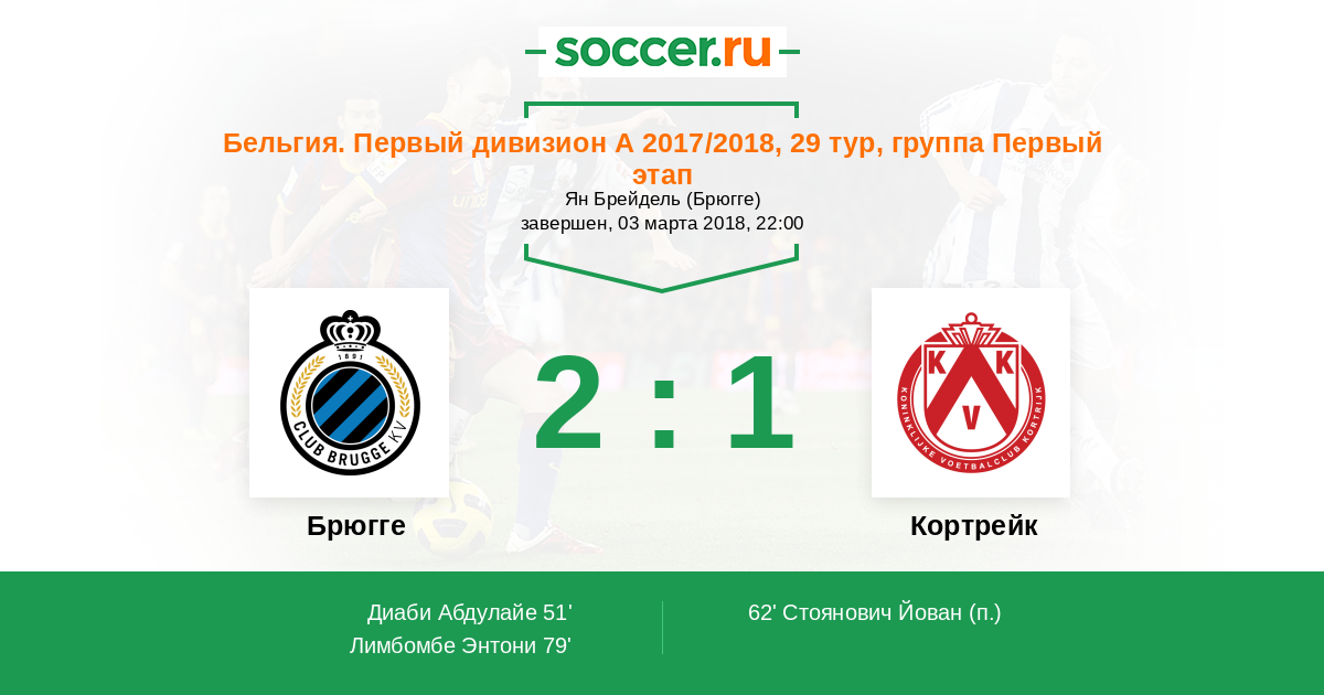51' (1:0) Диаби Абдулайе (10) (Ванакен Ханс (20))