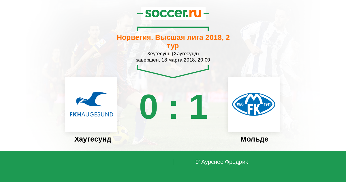 9' (0:1) Аурснес Фредрик (17) (Норманн Матиас (7))