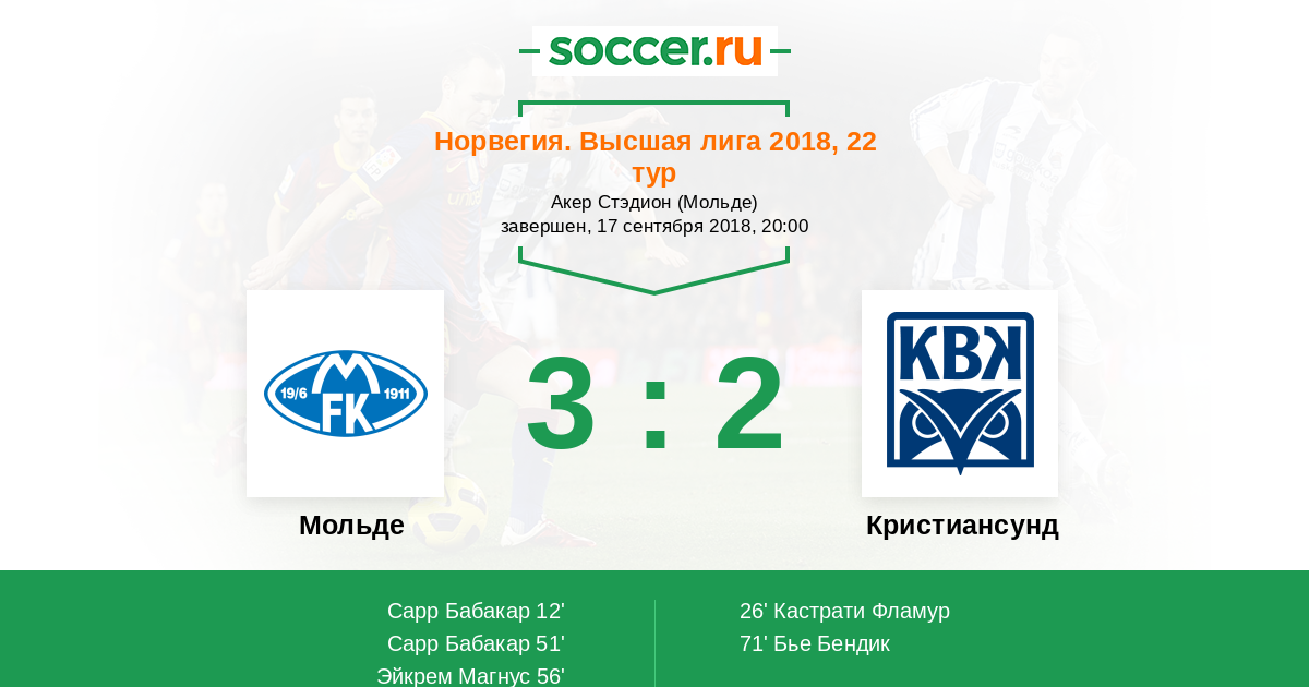 56' (3:1) Эйкрем Магнус (7) (Габриэльсен Рубен (4))