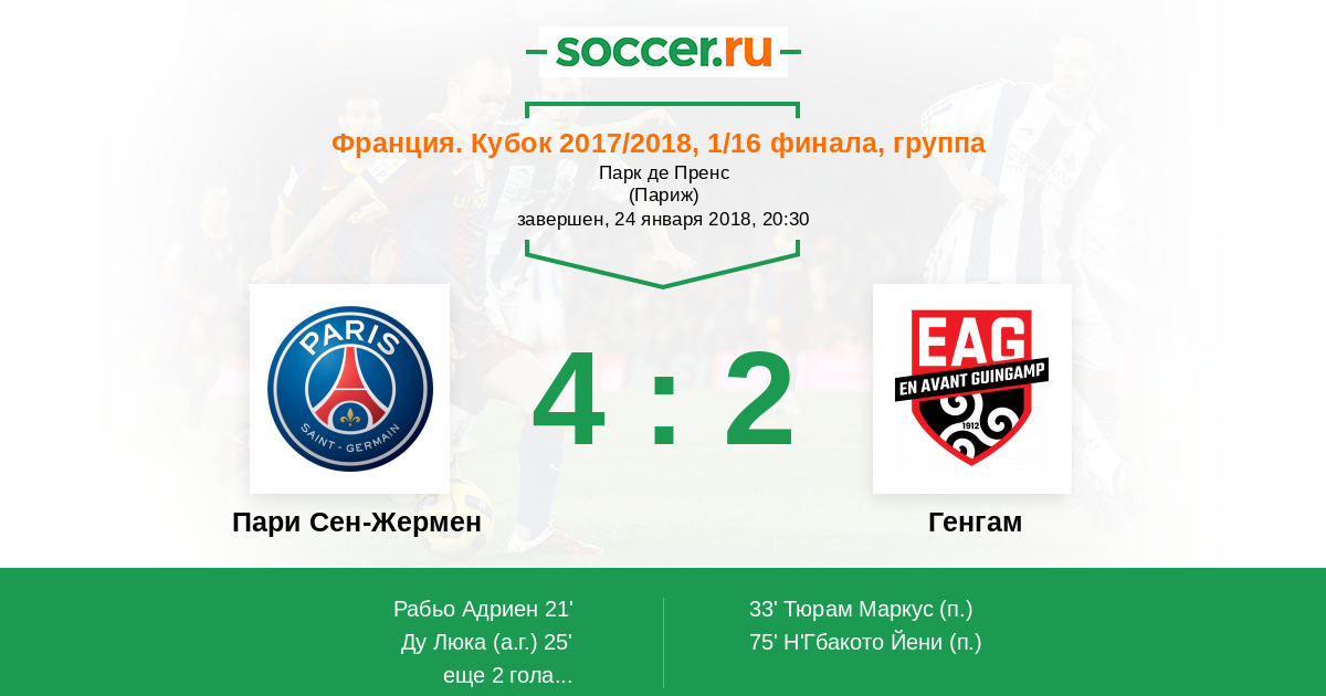 33’ 2:1(П) Тюрам Маркус