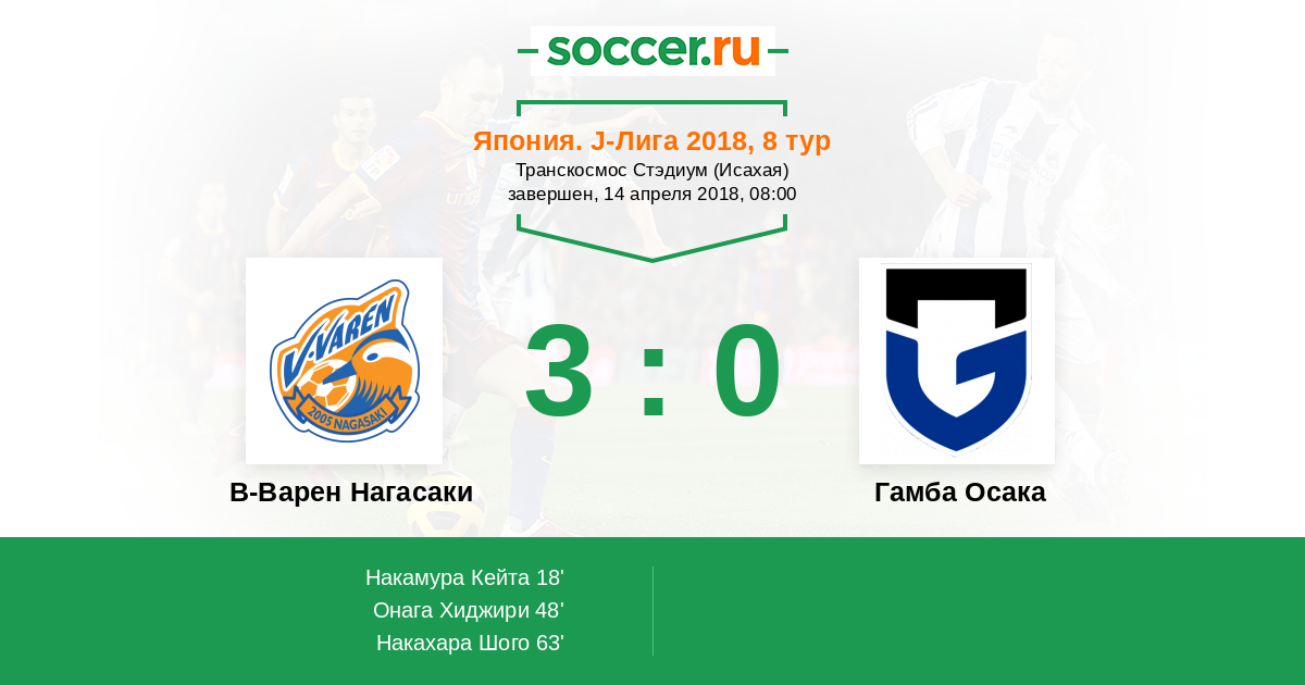 18' (1:0) Накамура Кейта (20) (Савада Такаши (19))