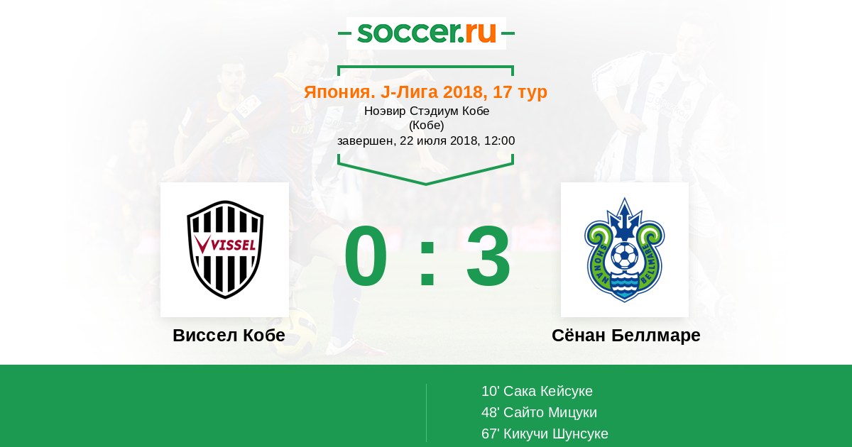 10' (0:1) Сака Кейсуке (20) (Акино Хироки (10))