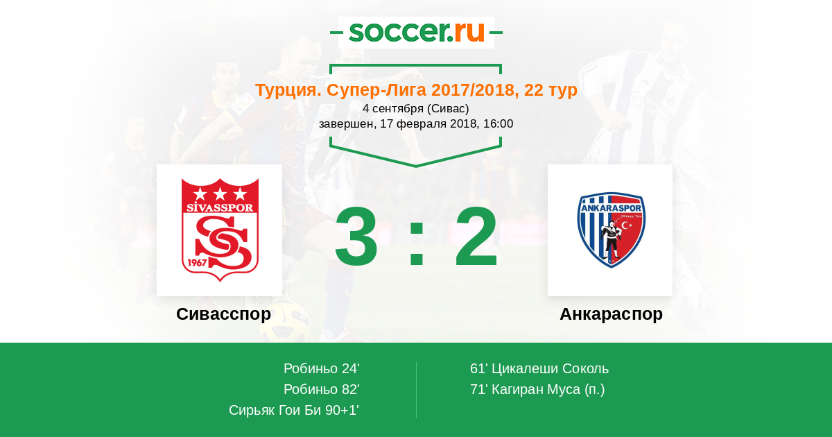 90+1' (3:2) Сирьяк Гои Би (90) (Робиньо (70))