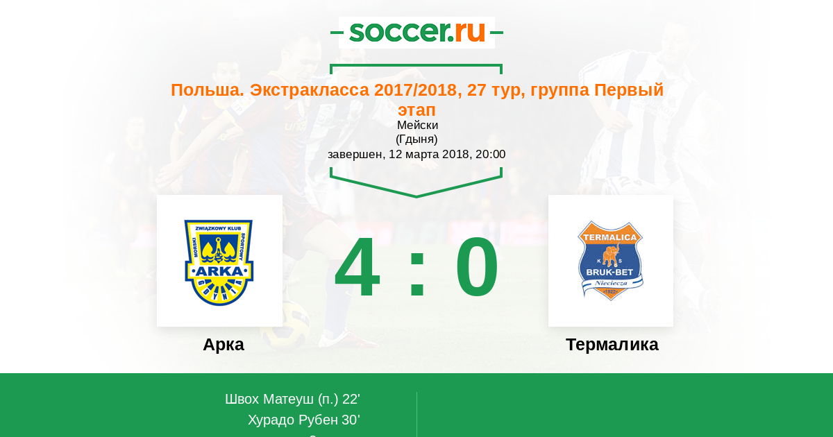 34' (3:0) Янковски Мацей (22) (Швох Матеуш (10))