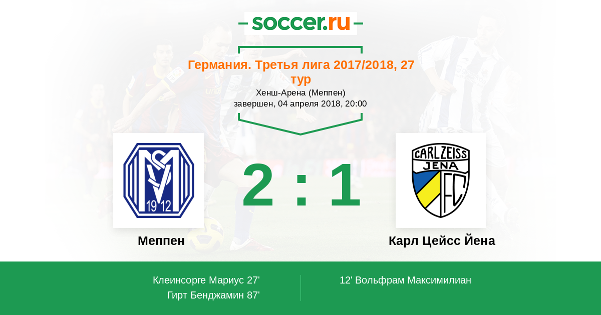 27' (1:1) Клеинсорге Мариус (20) (Гранатовски Нико (9))