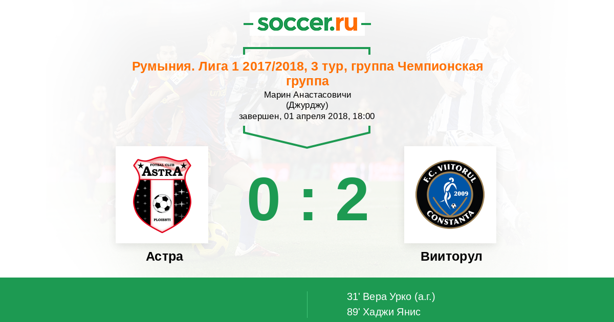 31’ 0:1(А) Вера Урко