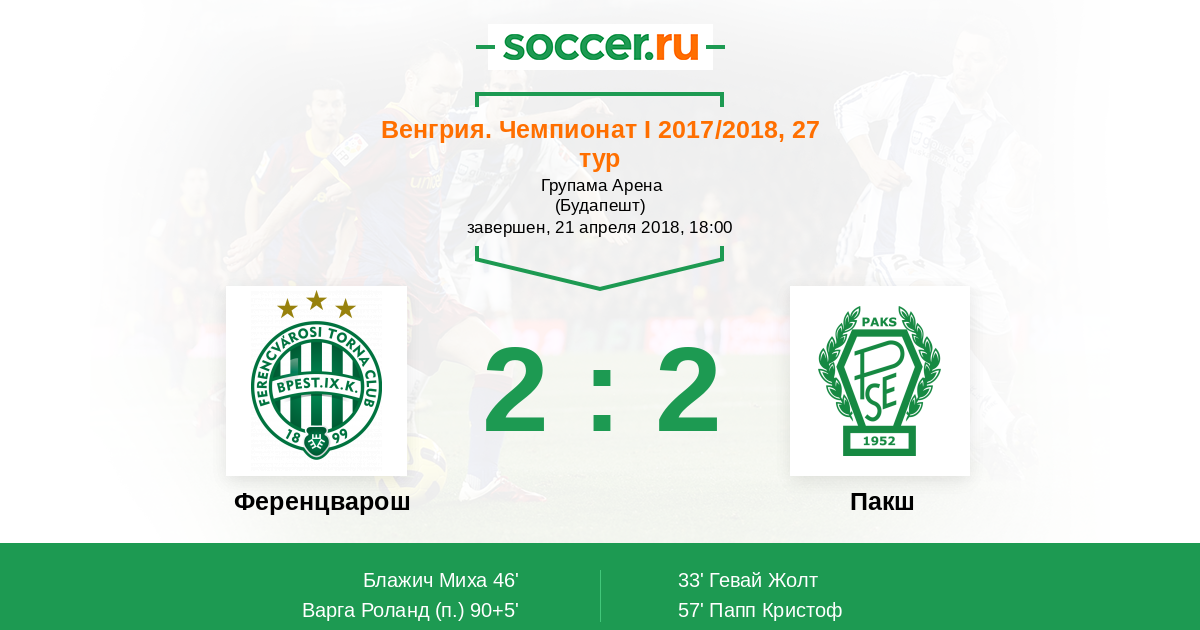 90+5' (2:2) Варга Роланд (97)