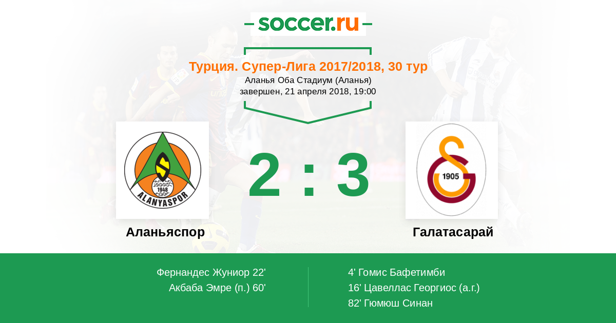 22' (1:2) Фернандес Жуниор (78) (Акбаба Эмре (10))