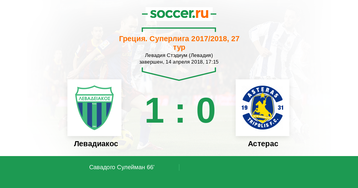 66' (1:0) Савадого Сулейман (42) (Якумакис Петрос (20))