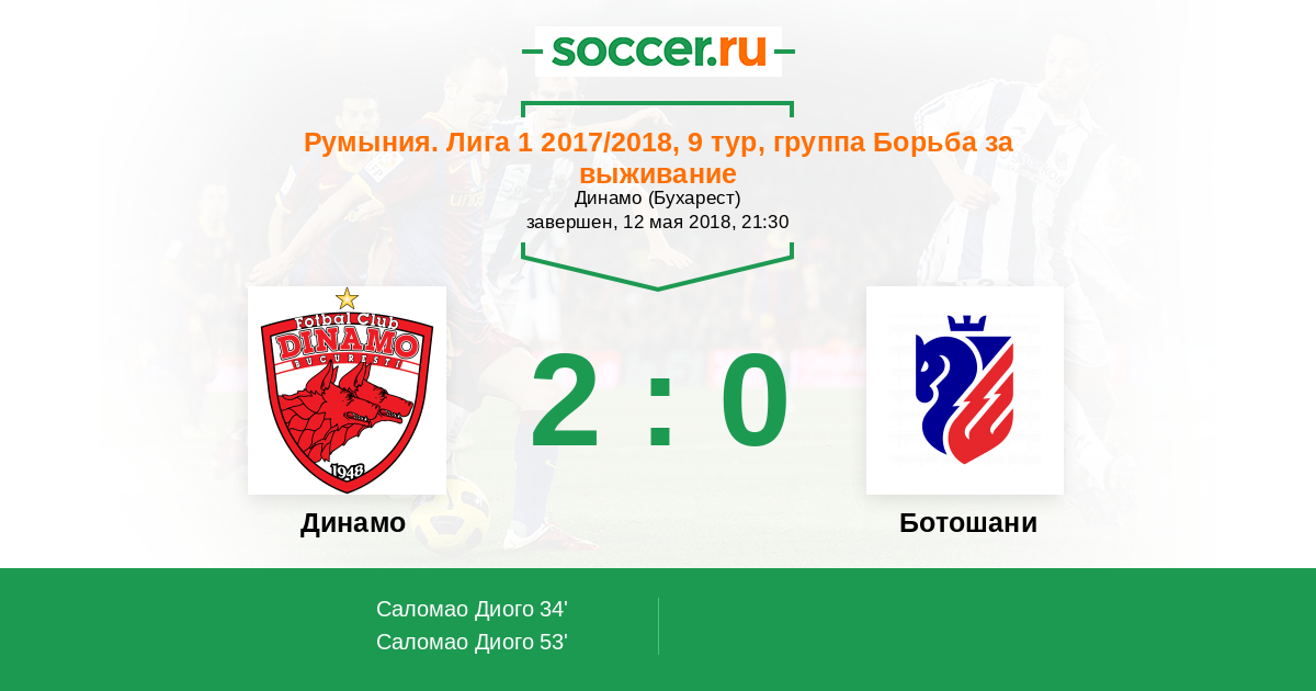 34' (1:0) Саломао Диого (20) (Молдовану Роберт (31))