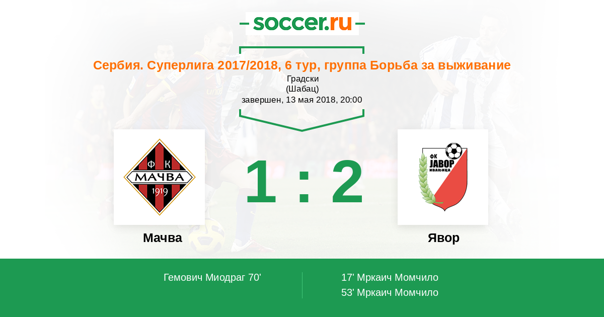 17' (0:1) Мркаич Момчило (22)