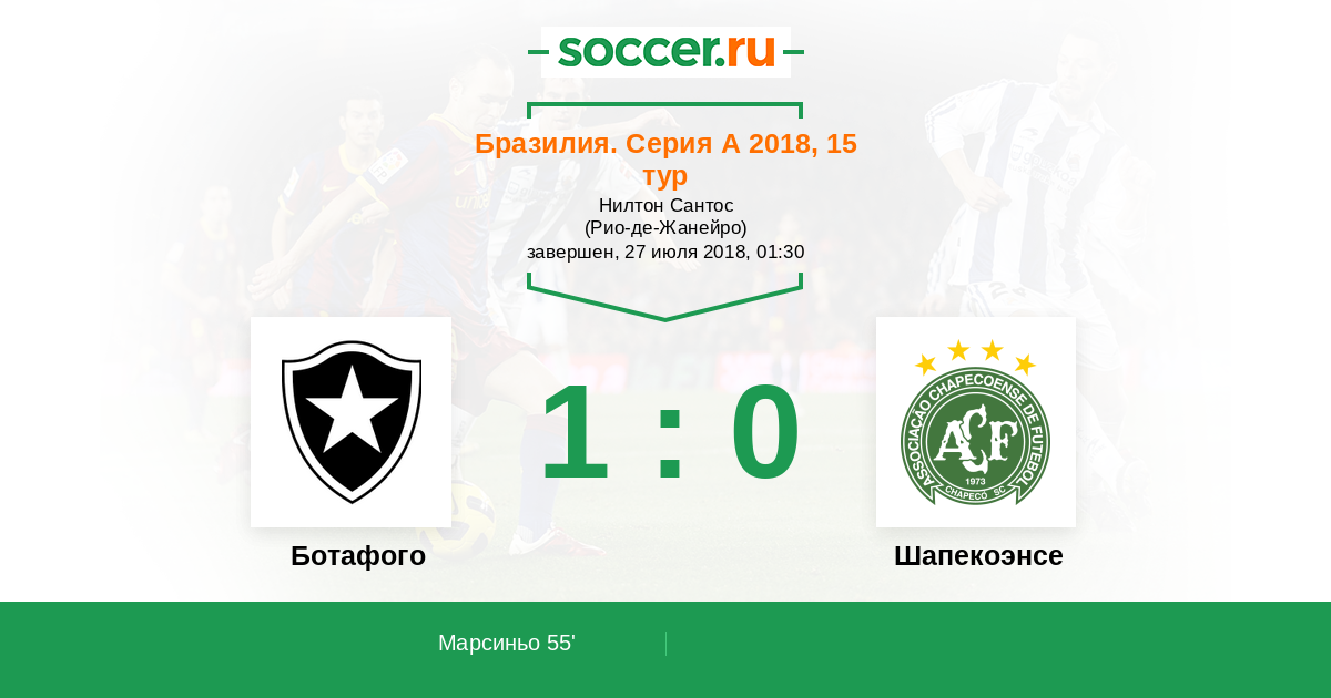55' (1:0) Марсиньо (4) (Кьеза Велкер (9))