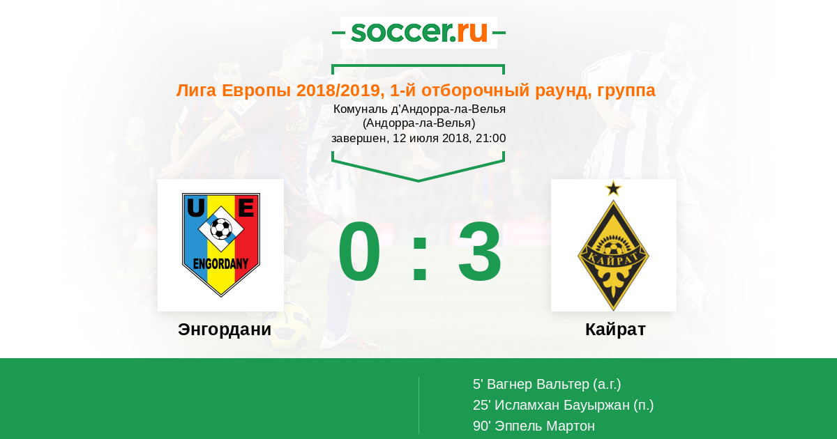 5' (0:1) Автогол Вагнер Вальтер (2)