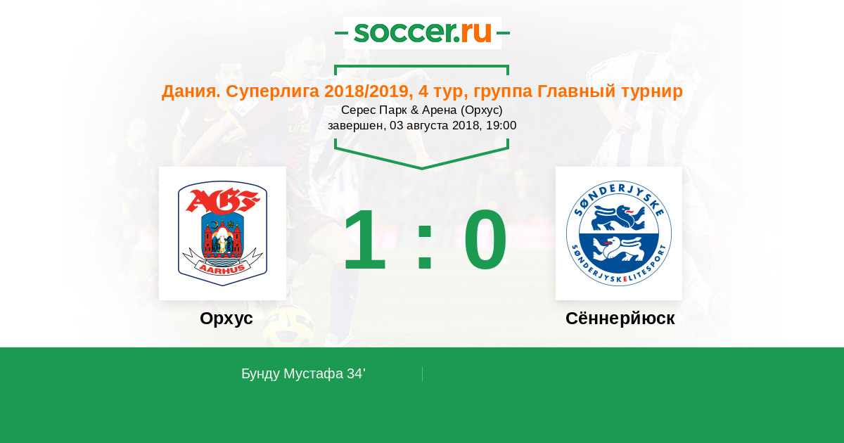 34' (1:0) Бунду Мустафа (19) (Блуме Брор (29))