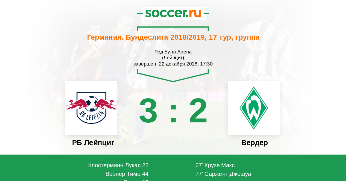 22' (1:0) Клостерманн Лукас (16) (Кампль Кевин (44))