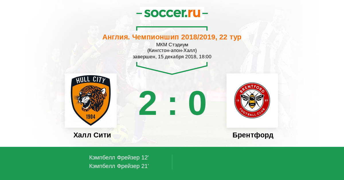 21' (2:0) Кэмпбелл Фрейзер (25)