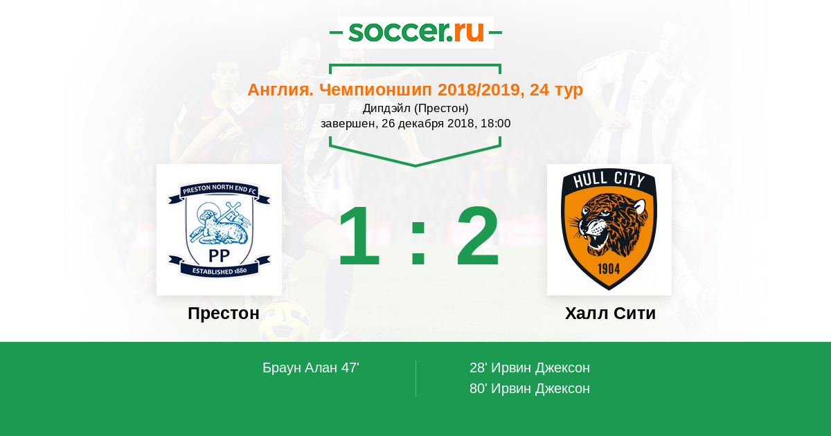 80' (1:2) Ирвин Джексон (16) (Элфик Томми (35))